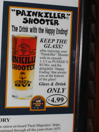 durch Road Town mit Einkehrung in die urgemütliche und berühmte Pusser's Outpost Bar - der Painkiller Shooter hatte es in sich ...